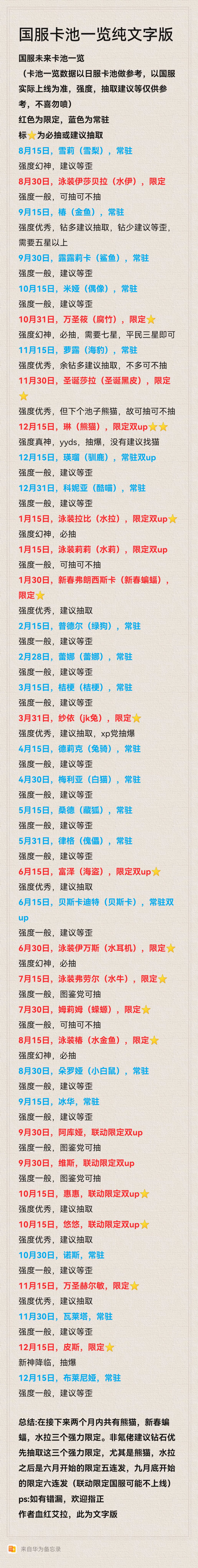 (卡池一览数据以日服卡池做参考,以国服实际上线为准,强度,抽取建议等仅供参考,不喜勿喷)