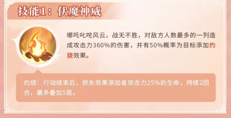 首先单列360%的伤害再附加2回合25%攻击伤害的灼烧,已经是上古中很逆天的数值了。