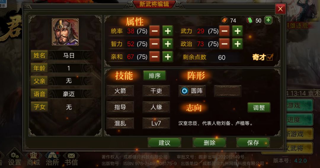 你玩了三国志14的话会不会感觉这游戏登人太不合理了,哇。这个游戏难度太低了云南登襄平的人一回合中就能完成,为什么会说这游戏难度低,我玩个190的本选没有智将的我开局就会登贾诩。当然,我还是很希望群雄时代可以把人做多一点不多要求一个月至少要做3,4个人吧,不然小势力太难了,没有人可用。现在我开始与三国志14做对比看看哪个势力少了哪个人且做出在火锅中的属性。