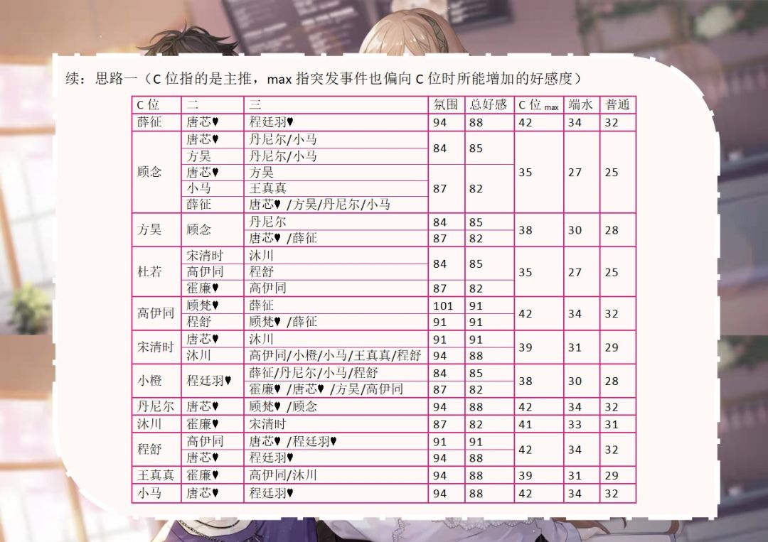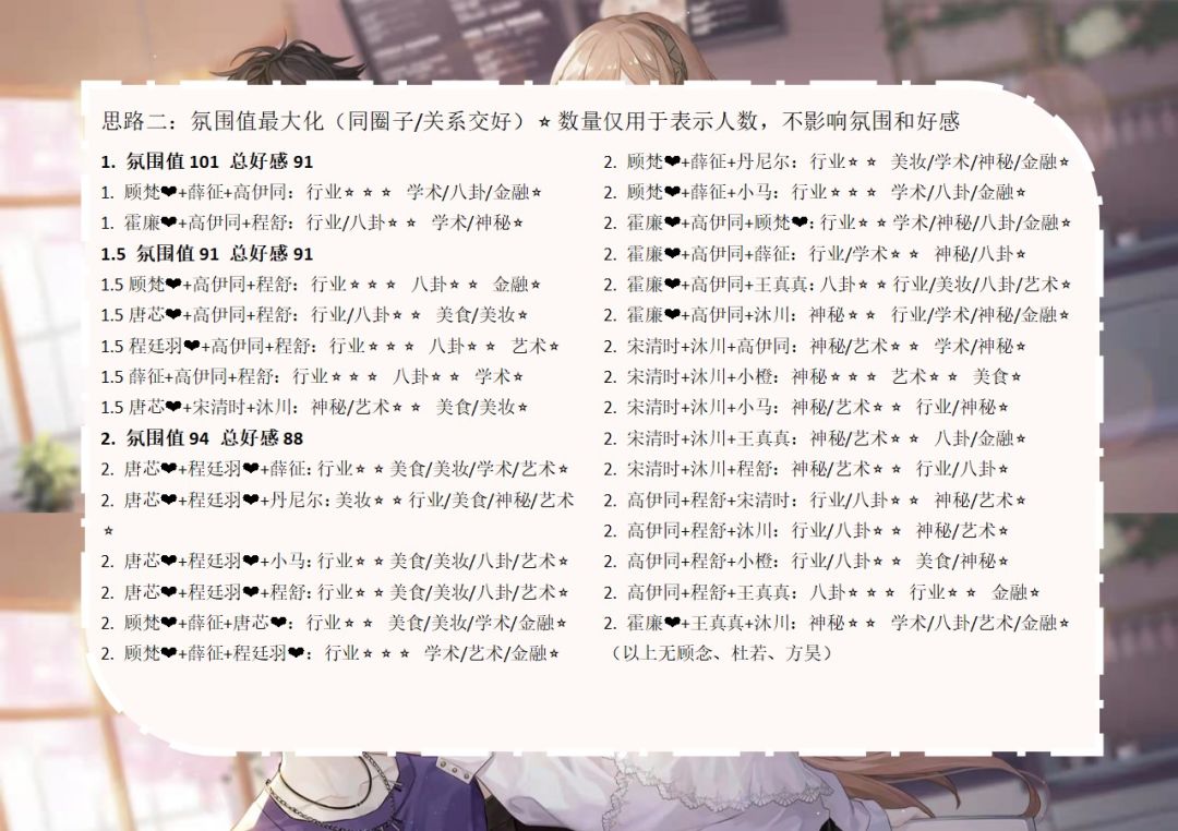 三、攻略专注如何选人,甜品和话题默认都选对,图里的氛围值都写的是最大值!!