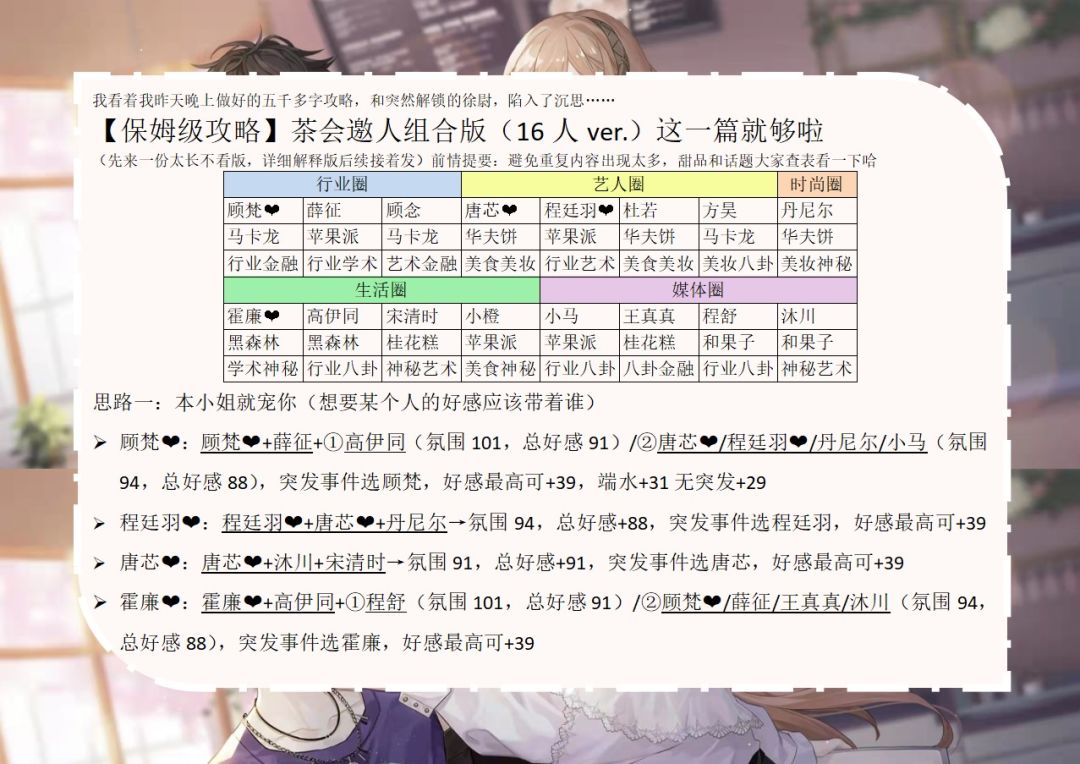 ❤️[保姆级茶话邀请攻略]16人版(上:结论篇)