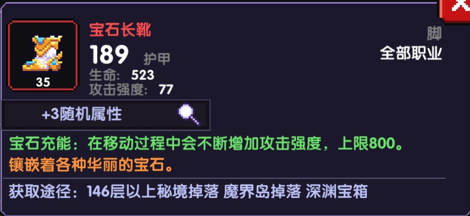 宝石鞋是当今版本最强的鞋子,任何一个鞋子都不能撼动到它的地位,800攻强基本等于2把武器的攻强词条加成,飞翼这个鞋子能给游侠提供必要的攻速加成,而且还能将攻速转化为伤害,最多转化12%伤害,宝石鞋跟飞翼两者选择得看自己,懒人用飞翼,想打更好的输出的可以用宝石,两极藤不适合用秘法鞋子,水系的技能频率太低,基本吃不到水系的元素加成