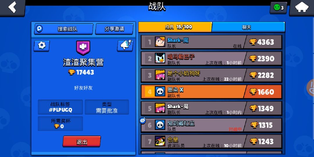 咳咳,小战队加人了,战队队长表示战队人太少了,聊天死气沉沉的,要招收队员了,不论你是几百杯的新手,还是千杯的大神,都欢迎一起来玩啊,不玩了,聊聊天也是可以的呀吖。