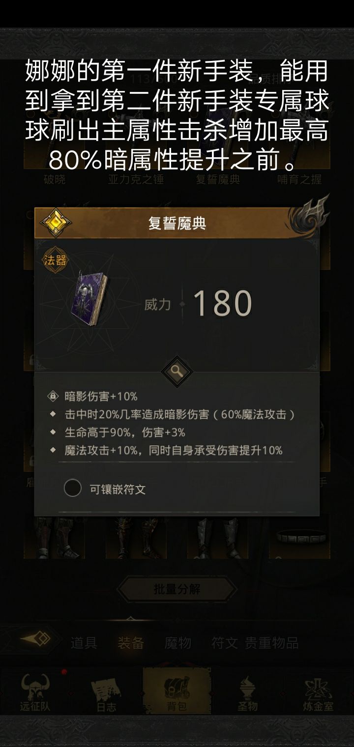 3,当你过啦秘境五之后会有一个质变点:装备质变点: 监视者的法球。(击杀加80%暗影攻击)