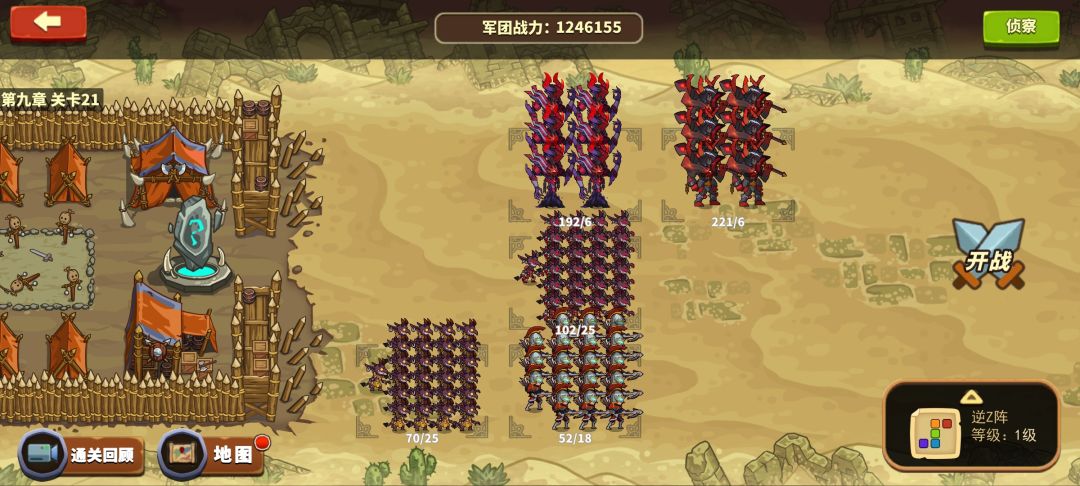 9-20 这关打了快20次才过,主要是龙法太恶心。皇弩必须带2以上射程的瞄准镜。这个站位保证皇弩第一时间打输出最高的牛头,剑魔能打到美杜莎。然后就要碰运气了,如果boss第二个图腾放在龙法身边或者放在最前面就有机会,放到石头人身后或者美杜莎队伍里就gg。