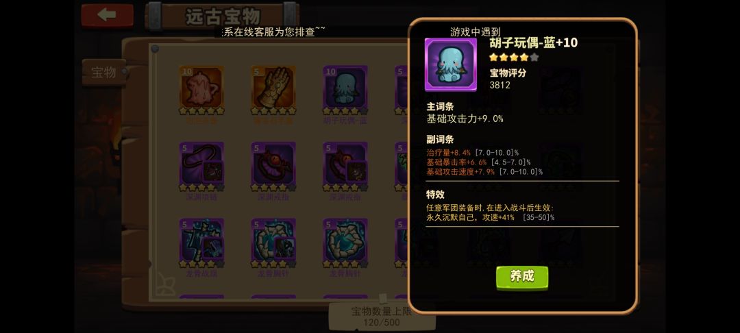 宝物:魔套,箭头,蓝胡子,瞄准镜(至少+2射程)。我胡子属性很好,瞄准镜和箭头都一般。