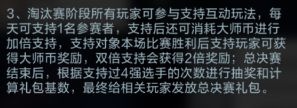 ③竞猜奖励,与小组赛的点赞相同,可以每天支持1位参赛选手,赢了就可以获得大师币奖励(小组赛为粉丝棒),并且可以花费50币进行超级加倍!赢了可以获得250币(不确定会不会与小组赛一样根据赛程拉长而增加每次奖励)