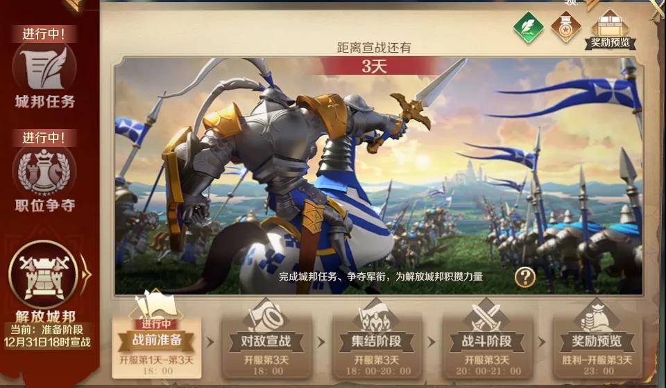 前一天解放城邦之后,大家在晚上11点后可以创建或者加入其它联盟,在第四天早上八点开始,领主大大们才能向八级城开始铺路,同时城邦任务转换为联盟任务,奖励方面也会更加丰富。