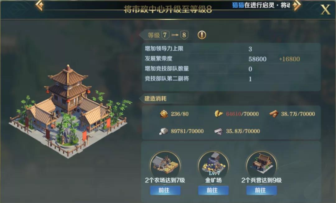 前期升级建筑基本按照一个原则进行:优先升级市政中心,并优先解锁升级市政中心的前置条件,可以少绕弯路浪费有限的资源。