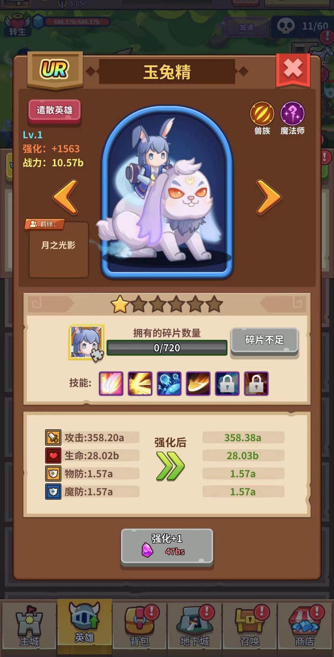 玉兔精,兽族,强大的法术攻击和控制英雄,与嫦娥组成强大的羁绊【月之光影】