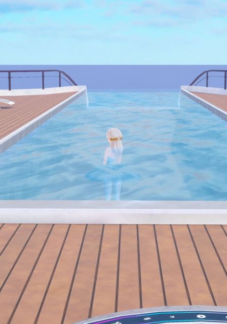 萌新才开始玩,刚才从元世界跑到一艘游轮上,海景很好看,看到邮轮上有一个泳池,激动的跑过去才发现是在水底行走,不会进入水中自动变为游泳状态么,这么站着有点尬呀,游泳成泡澡了