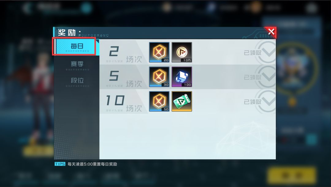 竞技场每日场次奖励、赛季结算(每周)、段位奖励(仅一次)