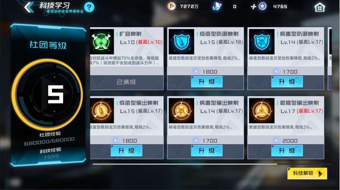 总结:社团币优先升级自己主要属性的社团科技