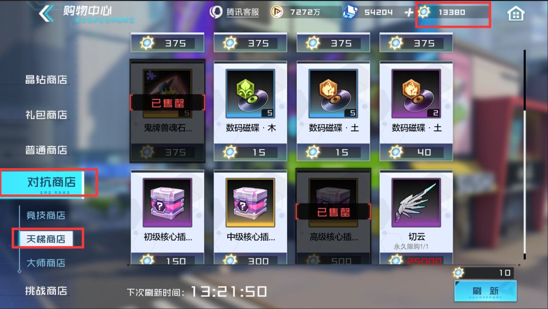购买天梯商店限定魂石碎片、购买高级核心插件宝箱