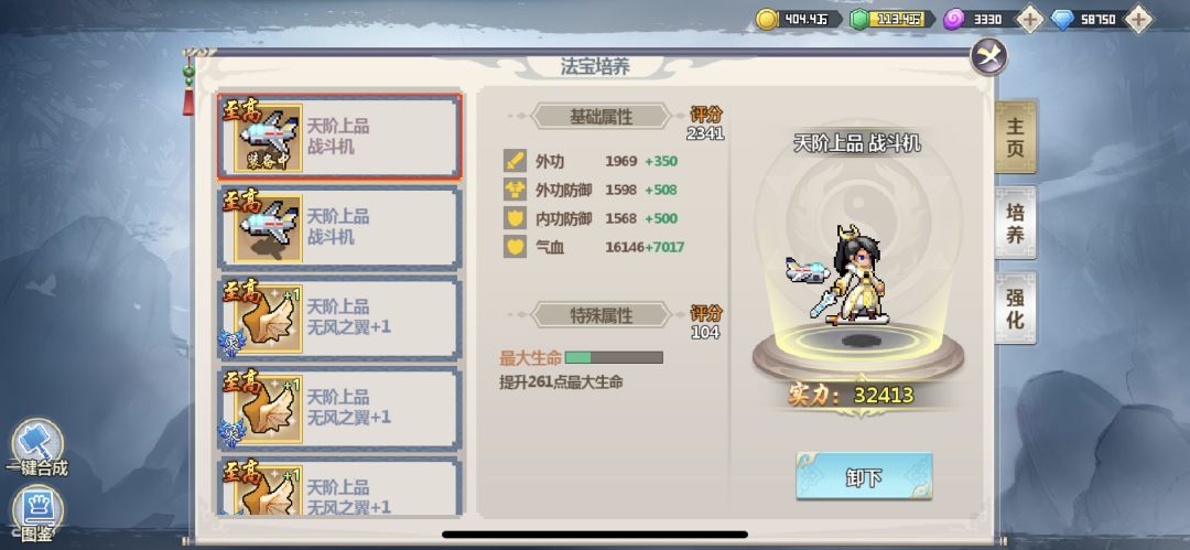 4.法宝合成选择时,单次最多只能选择不超过50个法宝进行合成,否则将无法进行合成。