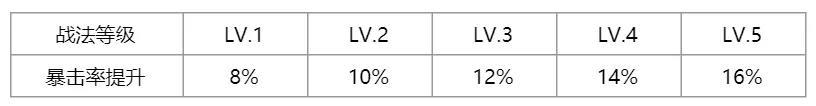 马超每隔20秒暴击伤害提升(0阶120%;3阶160%;6阶200%;9阶240%)持续8秒。
