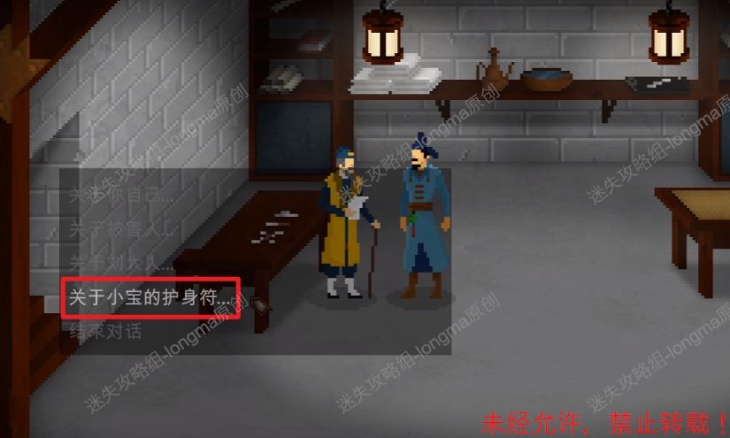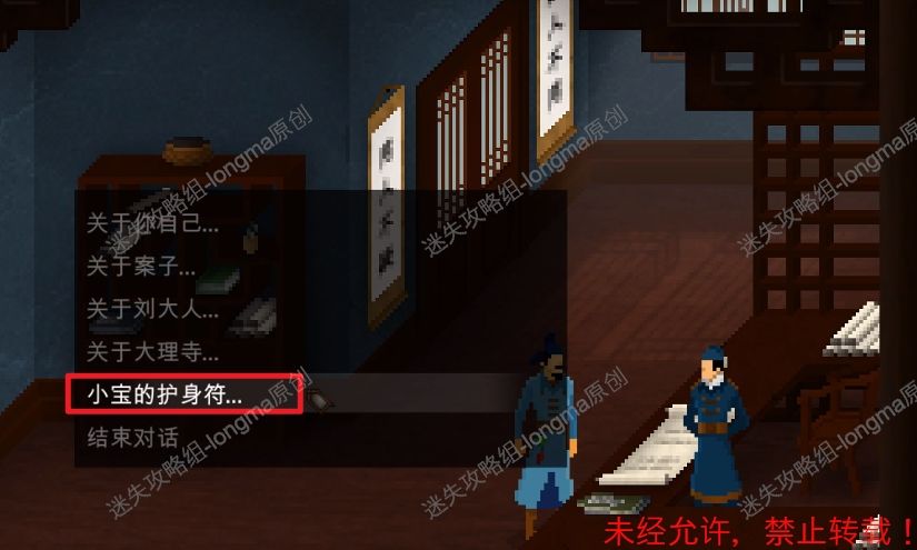 57.来到大理寺大厅,和马大伟对话选择“小宝的护身符...”。57