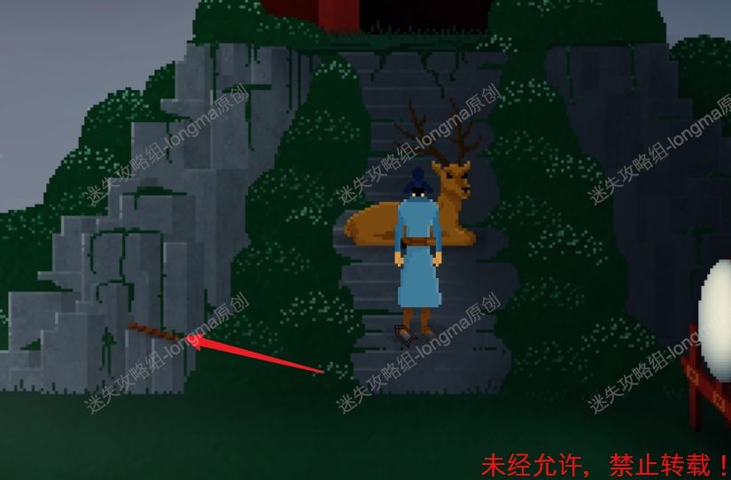 36.来到神鹿旁边,和神鹿交流,拾取在左边石头上出现的【鼓槌】。36