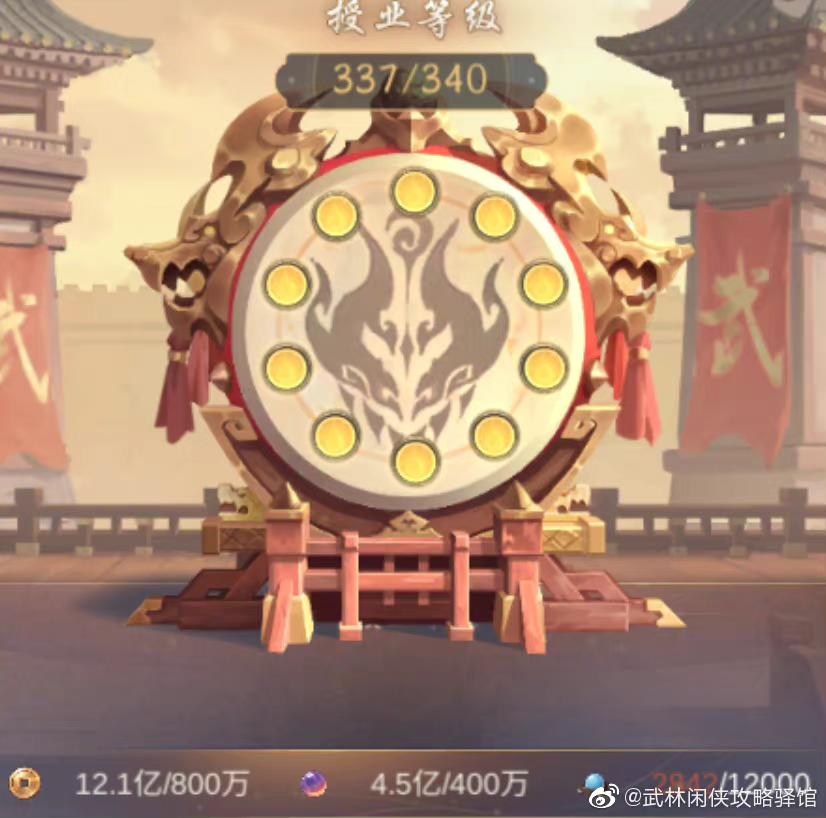 1、需要在练武场进行升级,先使用铜钱和修为给大鼓充能10次,再使用铜钱+修为+突破丹进行升级