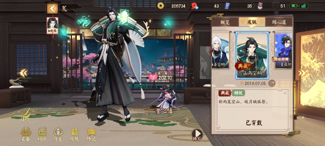 当然最喜欢的式神还是荒吧,毕竟是当初yys第一只出的ssr,同样也是扒鸡第一个极意的式神,虽然没到奥义,但意义还是很大的,所以当时氪了第一个典藏皮,不过那会傻乎乎的本来能换刀典藏,给我傻愣愣的全去换了好感道具,怎么说呢给我的感觉是四周年京京更加成熟有所转变了,但我个人还是希望策划能多关注一下一些老式神,很多式神已经没有出场了,几乎每局都能出现那几个只能说明部分问题了。(澄心可能不高,但是不影响60多个式神满好感了)