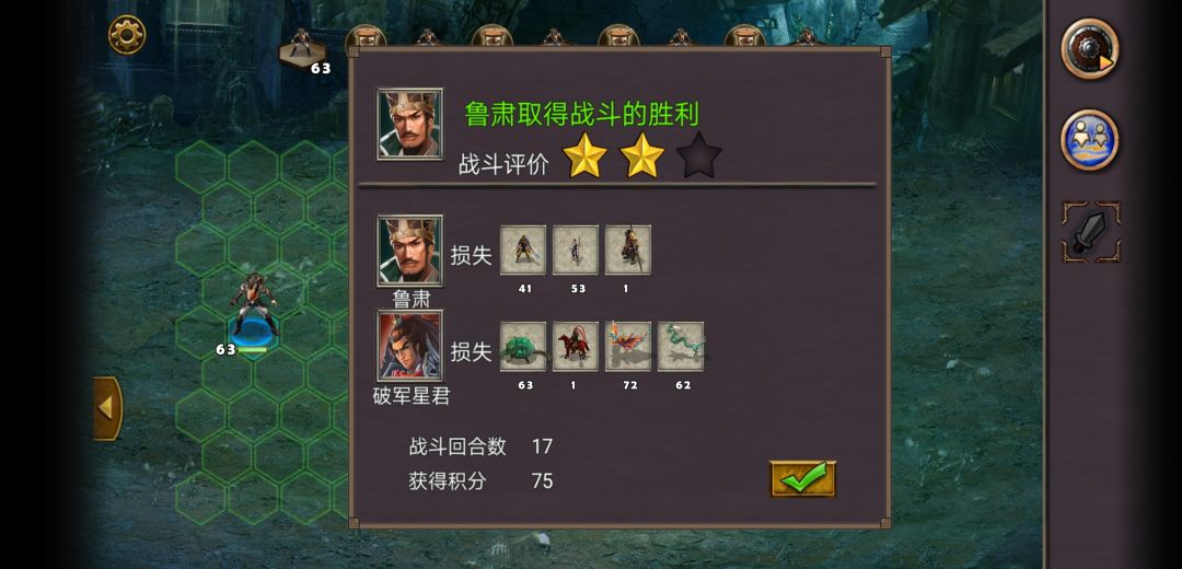 这个图,好玩,刺激,但不想再过第二次。看着鲁肃和水兵一下一下的挠就心烦,吕蒙又是世纪大垃圾。还有最后boss吕布难度降低了,为什么不把前面几个也降一降,尤其是董卓和曹仁。董卓小兵的自爆能不能取消了太恶心了。