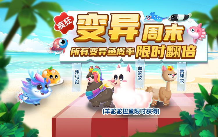 · “疯狂变异周末”活动--1月8日0点至1月9日24点正式开启。鱼儿变异概率限时提升,馆长大大们记得早点带上鱼儿一起参加活动哦~