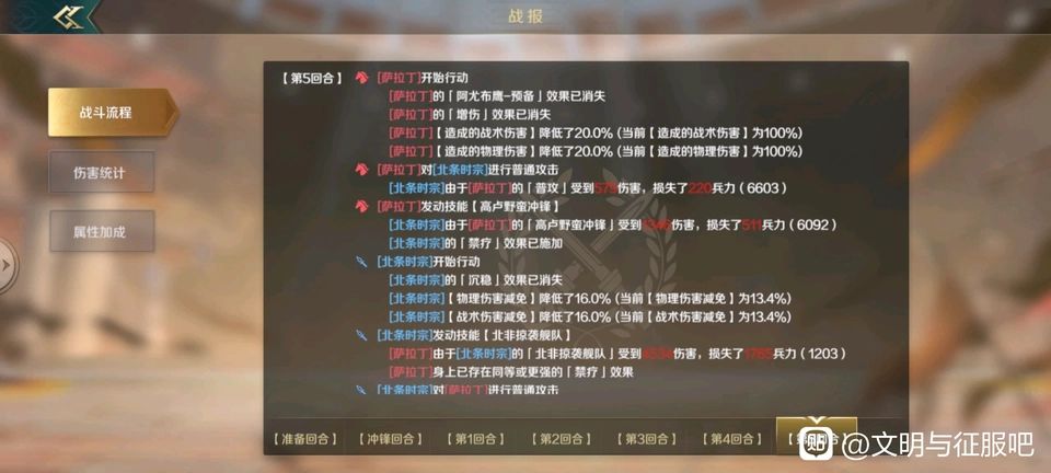 然后北条利用自身拥有的力量加成,再配合北非掠袭舰队和单点突破(两个技能都是攻击敌方血量最低的武将)的高额单体伤害和禁疗效果(只要敌方主将血量最少,北条直接就追着主将打,还不给回血),达到爆头的效果。