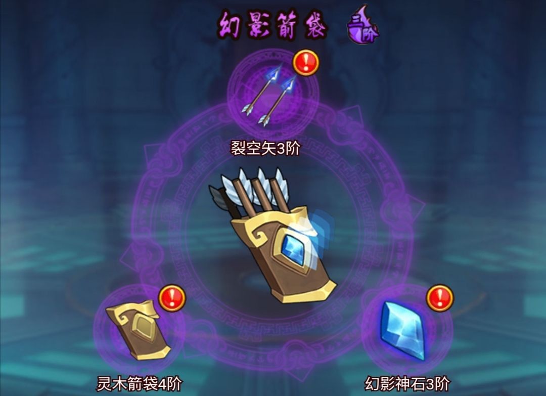 如果主将选择的是弓手或者炮手,那就优先升级幻影箭袋,日月双刃和四象法阵,这三样秘宝是增加征战中我方炮手和弓手的技能属性等等。