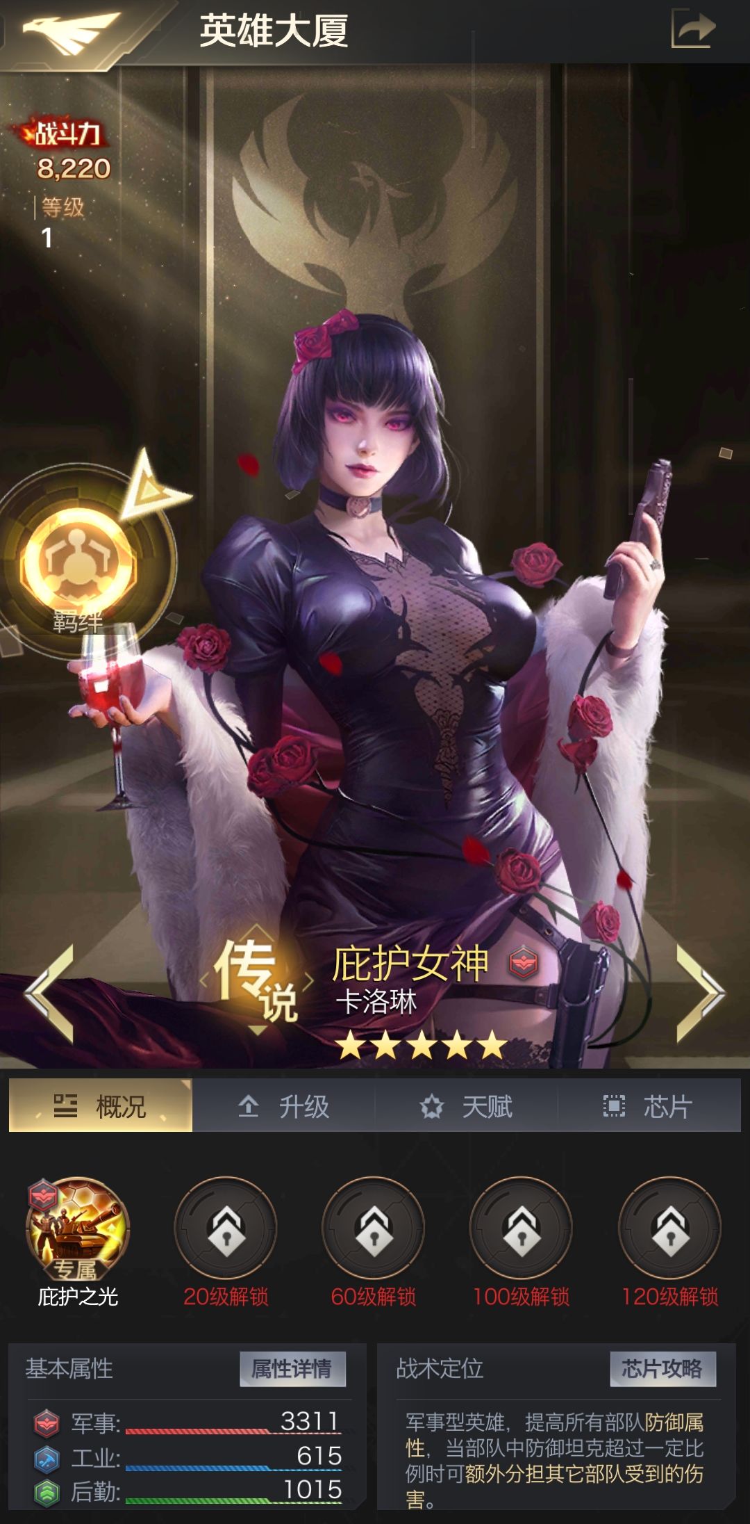 传说级英雄卡洛琳全新皮肤【紫裘夜影】今日上线!作为游戏中第一梯队的防御型英雄,卡洛琳拥有超凡的属性数值,极其适合防守。专属芯片技能“庇护之光”,可以转移战场伤害能量;防御坦克部队得以在吸收更多伤害的同时,进一步降低输出部队的损耗。搭配肉盾和输出流兵种阵容,可在战场上释放恐怖的能量!