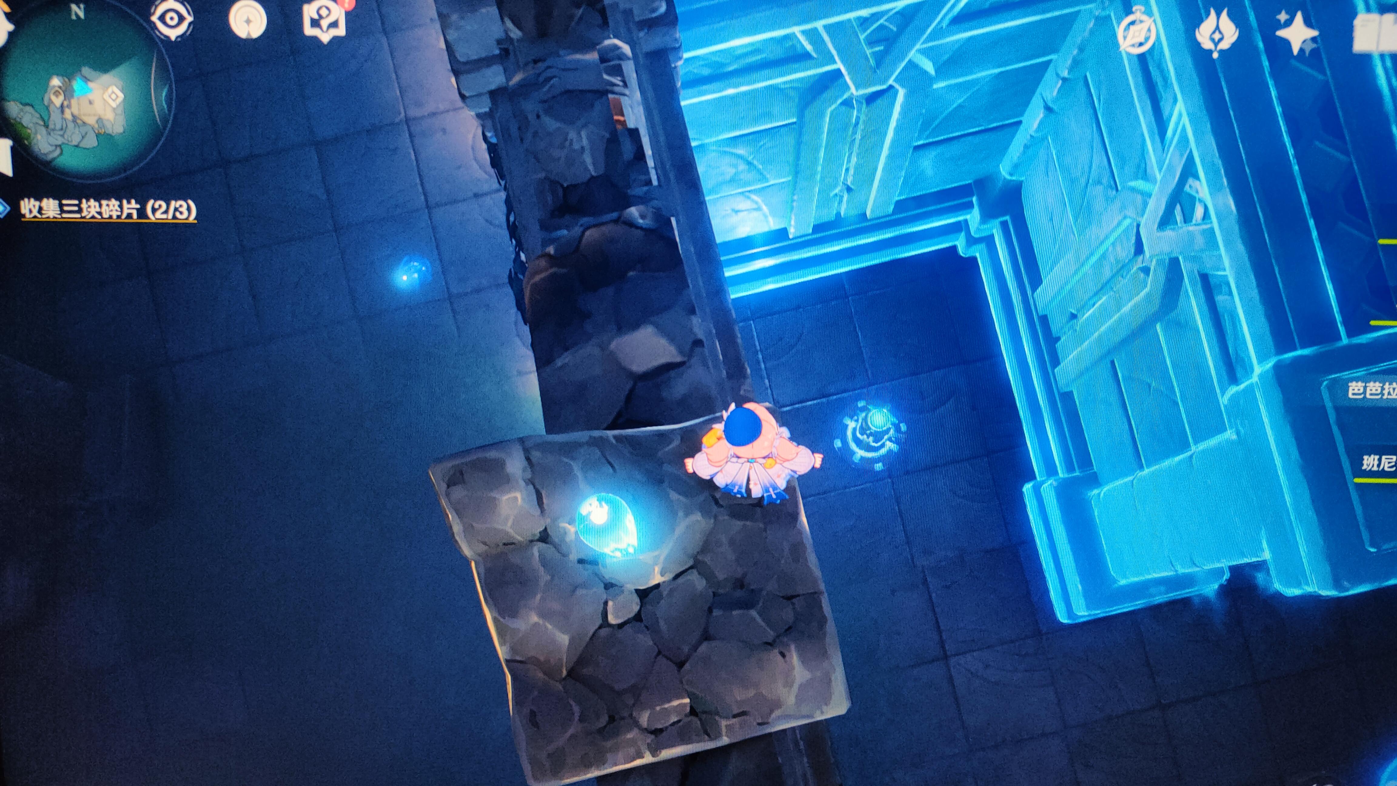 找到元素方碑的位置,用芭芭拉重击的AOE的远程范围水元素直接隔墙触发,让策划的阴谋直接破产。