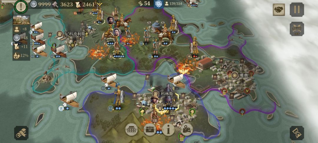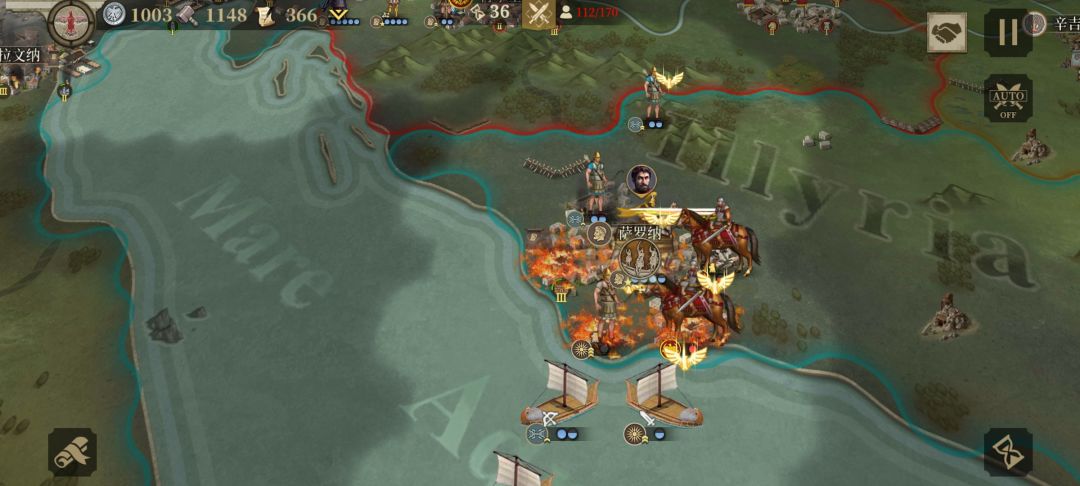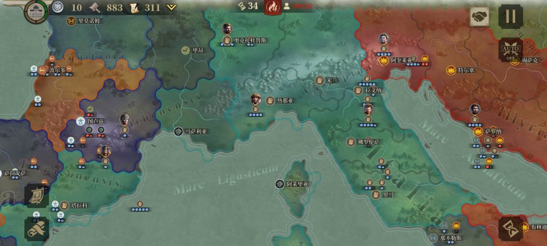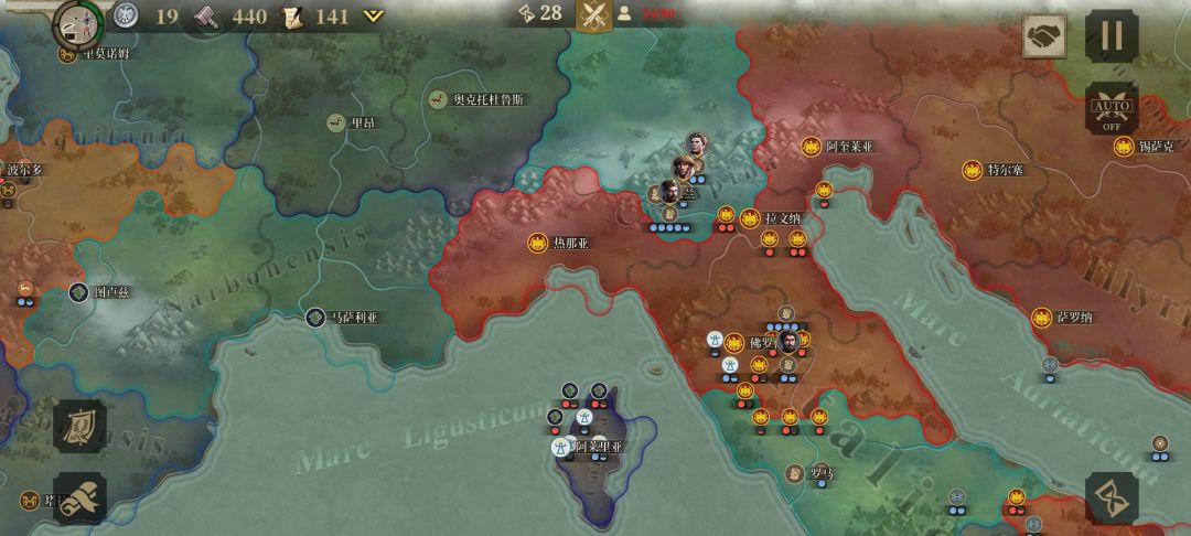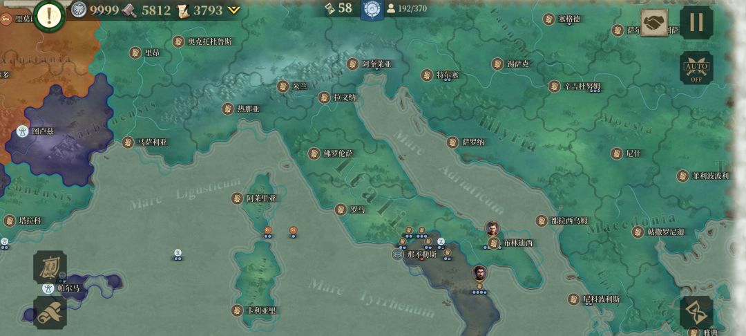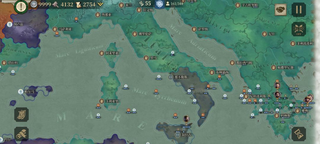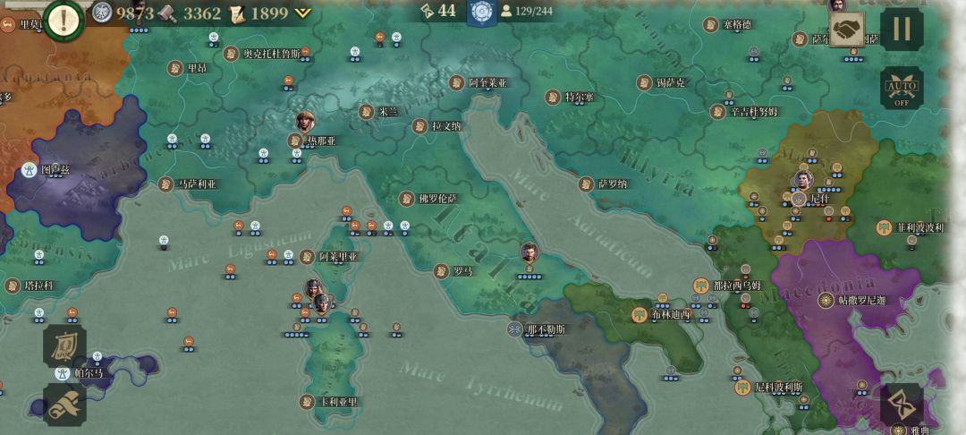 我向下的念想被迦太基掐断了,所以宣战中立象,然后挺进地中海,见势占领罗马,基本扭转了战局,与迦太基争夺、平分战场主动权又不过送资源给它,一起撑;后秉着见好就收的原则,在巴尔干地区接连宣战盟友马其顿、奥德里西亚王国(因为它离雅典很近,不希望灭亡马其顿的国家,灭亡罗马的头衔都被它抢走,雅典不能让),地中海小国叙拉古,跨海领土扩大了2倍,迁都罗马,最后举兵灭,我总爱遗忘的普兰尼。