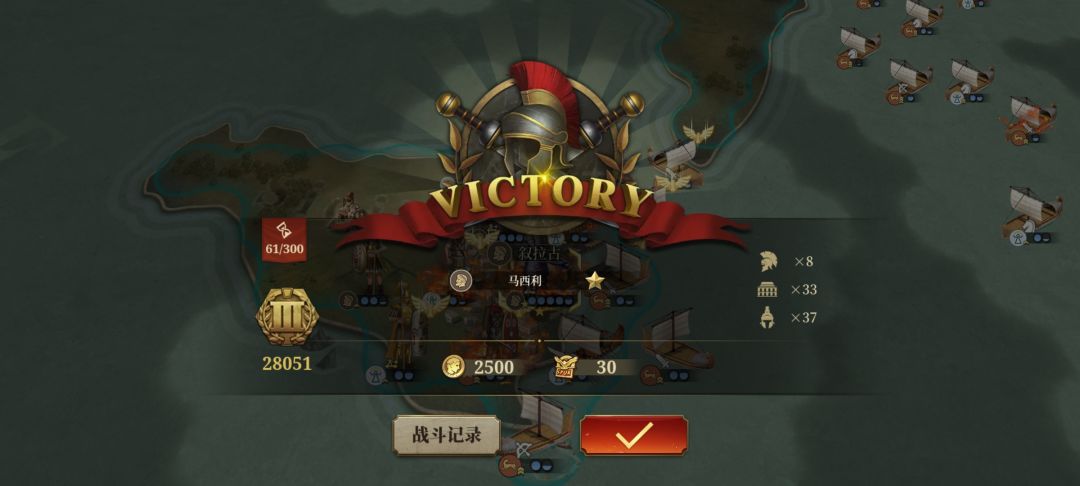 共计耗时61回合、任用8名高级将领、占领了33座城、剩37支军团、由于我的冒进安东尼阵亡,金质。![[嗒啦啦2_我好菜]](https://img.tapimg.com/market/images/0827e8f080b769074b9257fafe25b00d.gif)