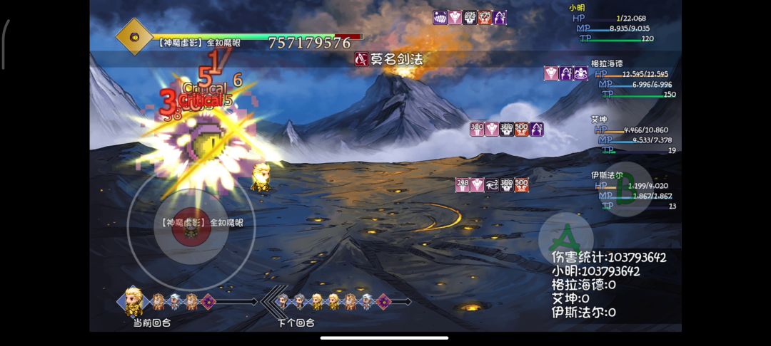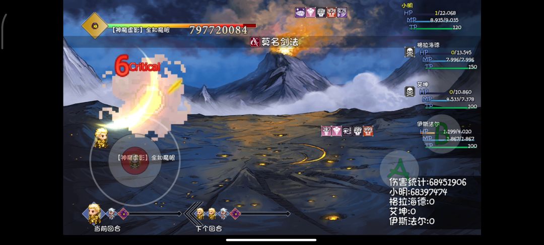 一轮buff,一回合,顶着领域减伤60%,8-9亿伤害直接秒神魔(暗女不灭buff还在,没有打青莲)青莲已经固定单动15亿了。