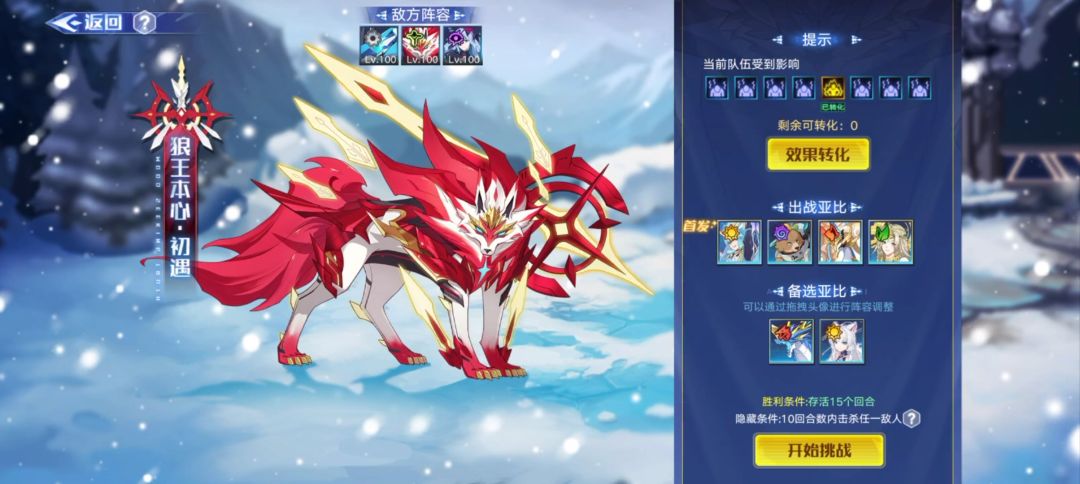 ②通关条件:存活15回合(如果十回合击杀一个亚比就可以胜利并跳过第二关)