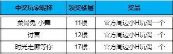 活动将2022年01月10日上午10:00截止,在全部回答正确的玩家中,届时随机抽取3名幸运儿,可以获得官方周边小H一个。