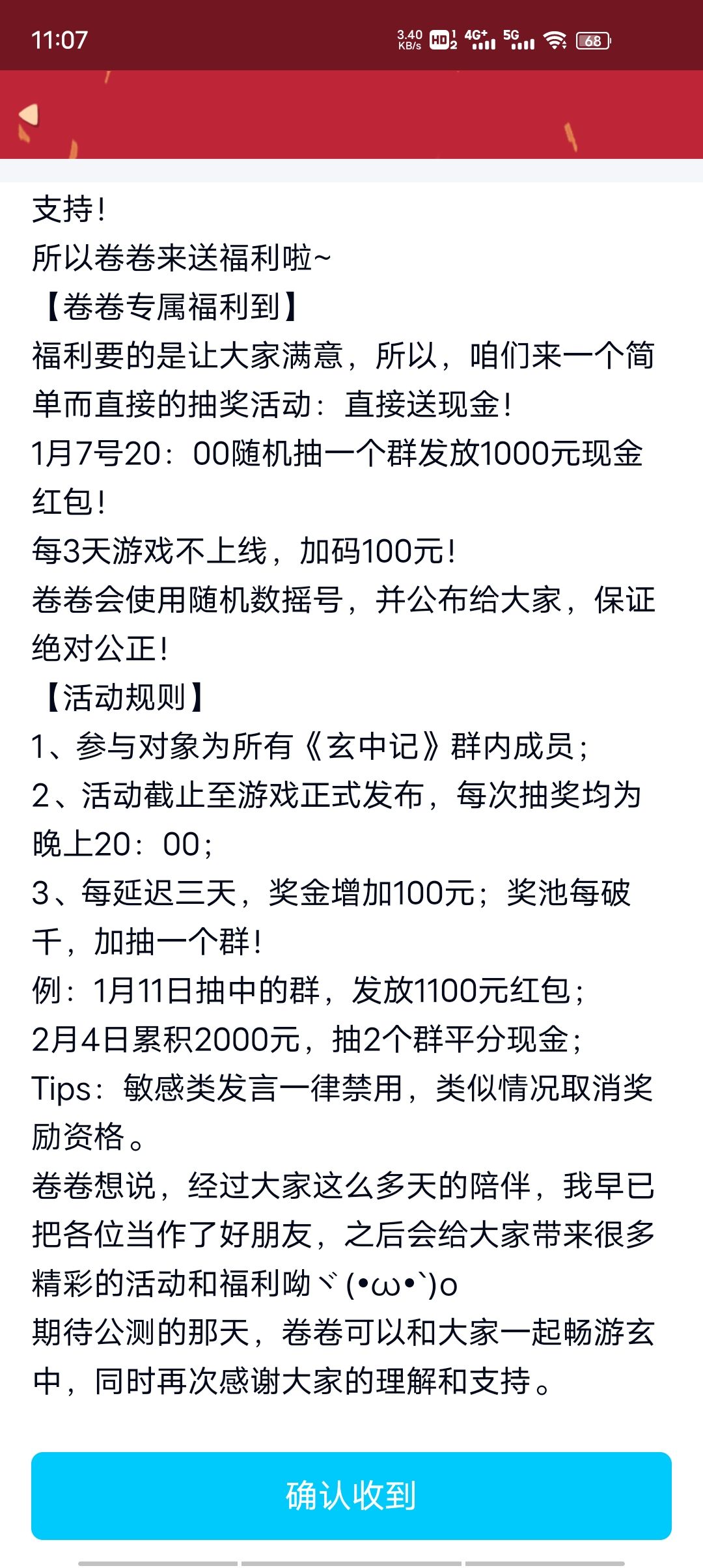 官方发奖励了哦,竟然那么大方,在几百个群里,抽一个发1000元现金红包。每推迟3天加100元,每满1000额外发一个群,每30天就有机会可以抽到你所在的那个群哦。