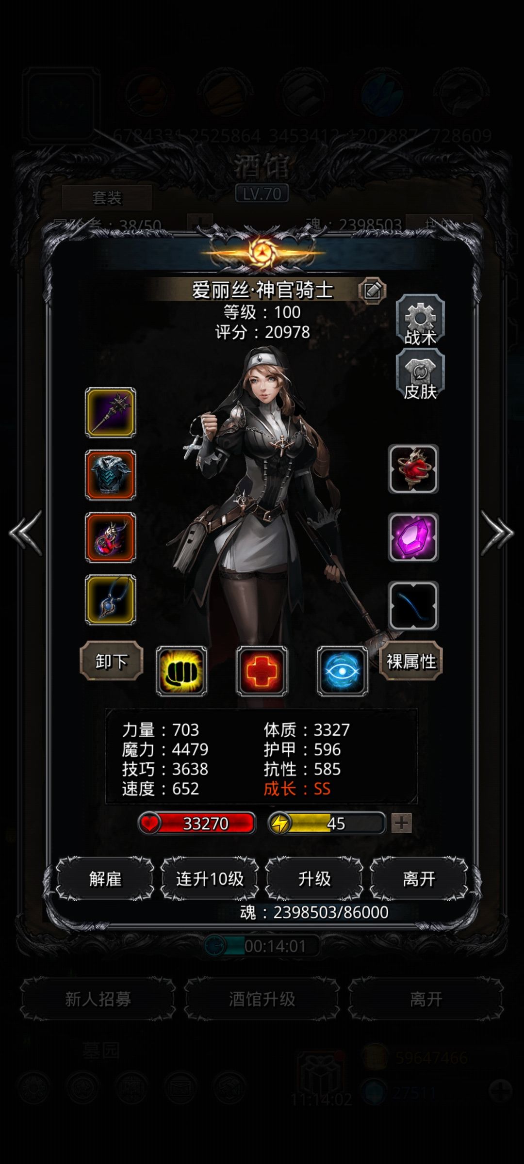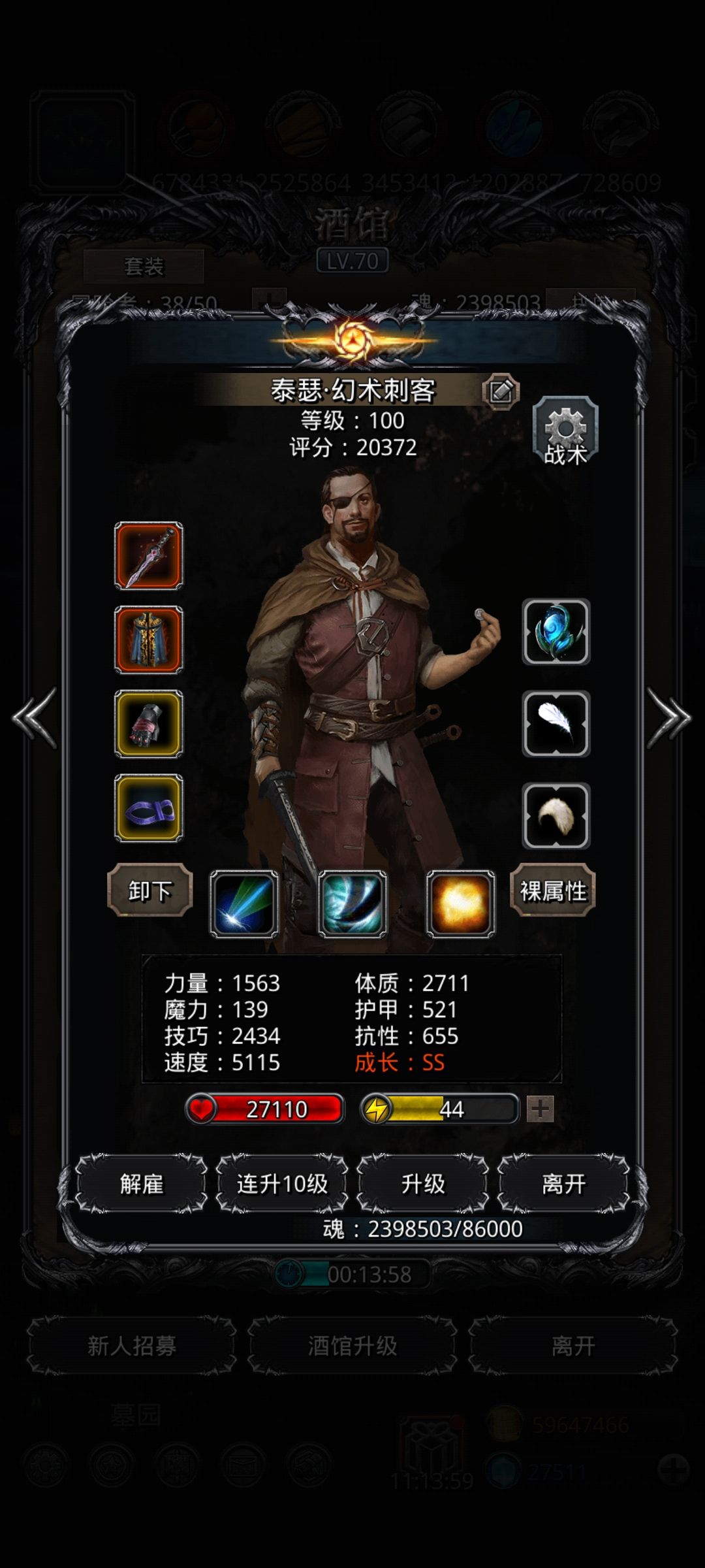 幻刺装备改了下,影兽禁袍的100%概率似乎能提高幻刺的生存能力,输出是够的,我大概2分钟打完卢修斯,剩下就挂机磨就行