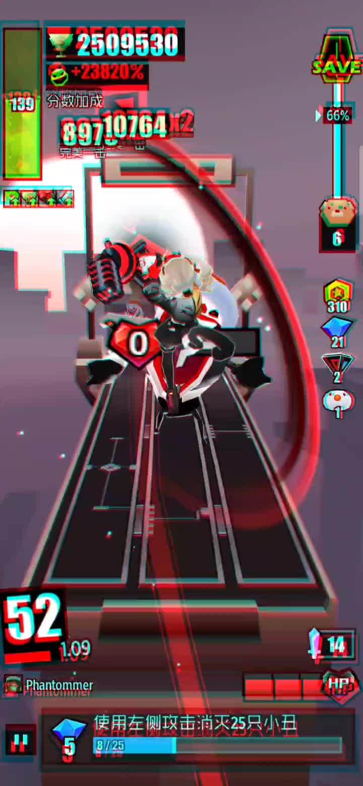 最后是④连击数,会轻微影响基础分S:每次连击会获得2%的分数加成,上限为100%,即50连击,掉血后立即重置