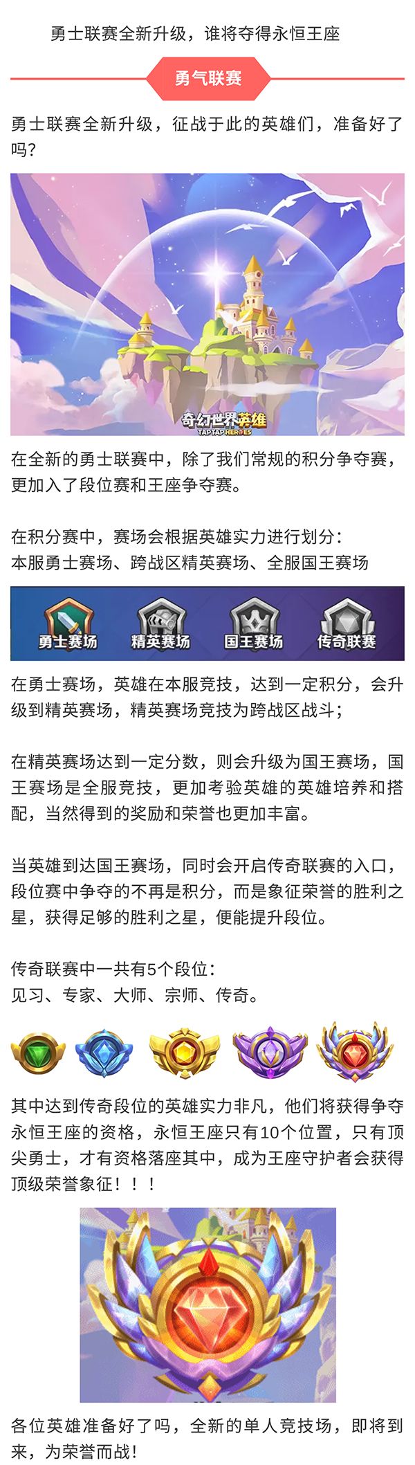 《奇幻世界英雄》勇士联赛全新升级,征战于此的英雄们,准备好了吗?