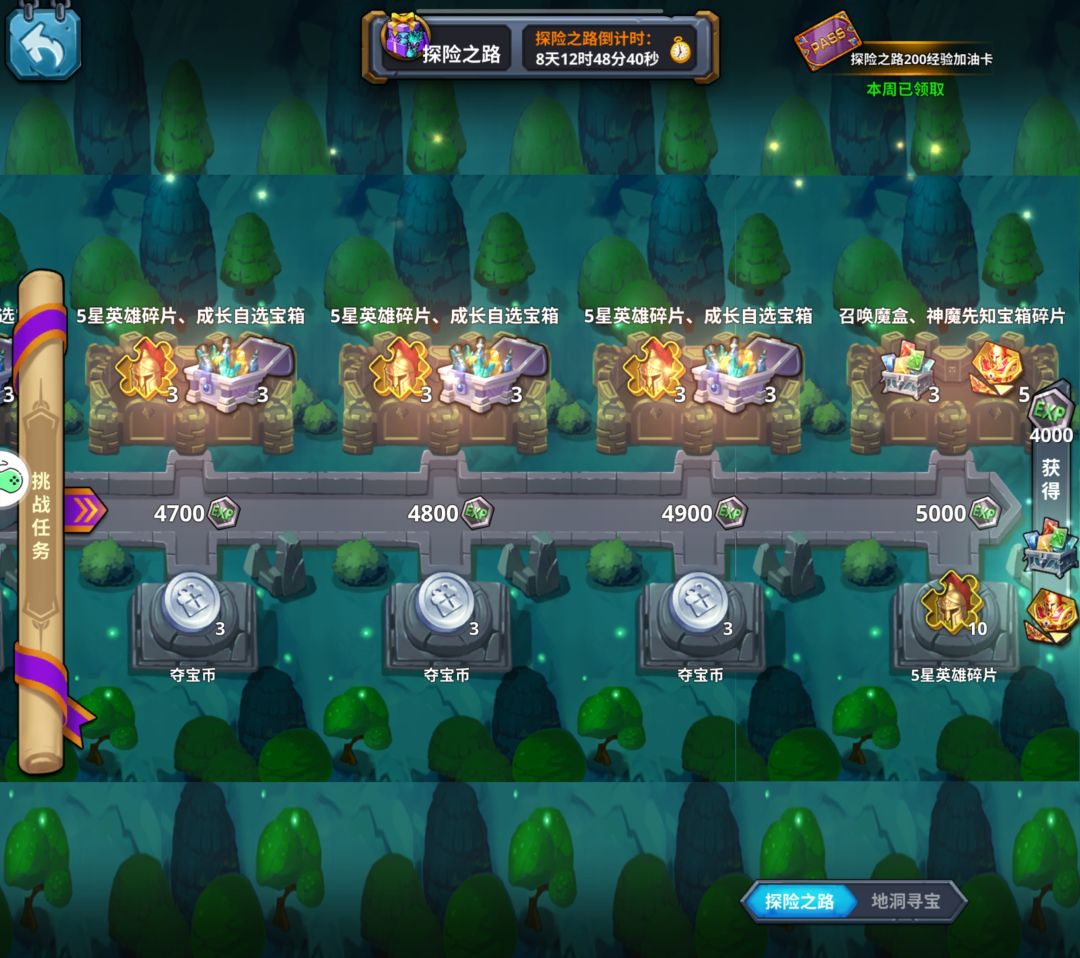 通行证月卡,5星碎片,神魔箱子碎片,成长宝箱选经验,盒子缺什么补什么。