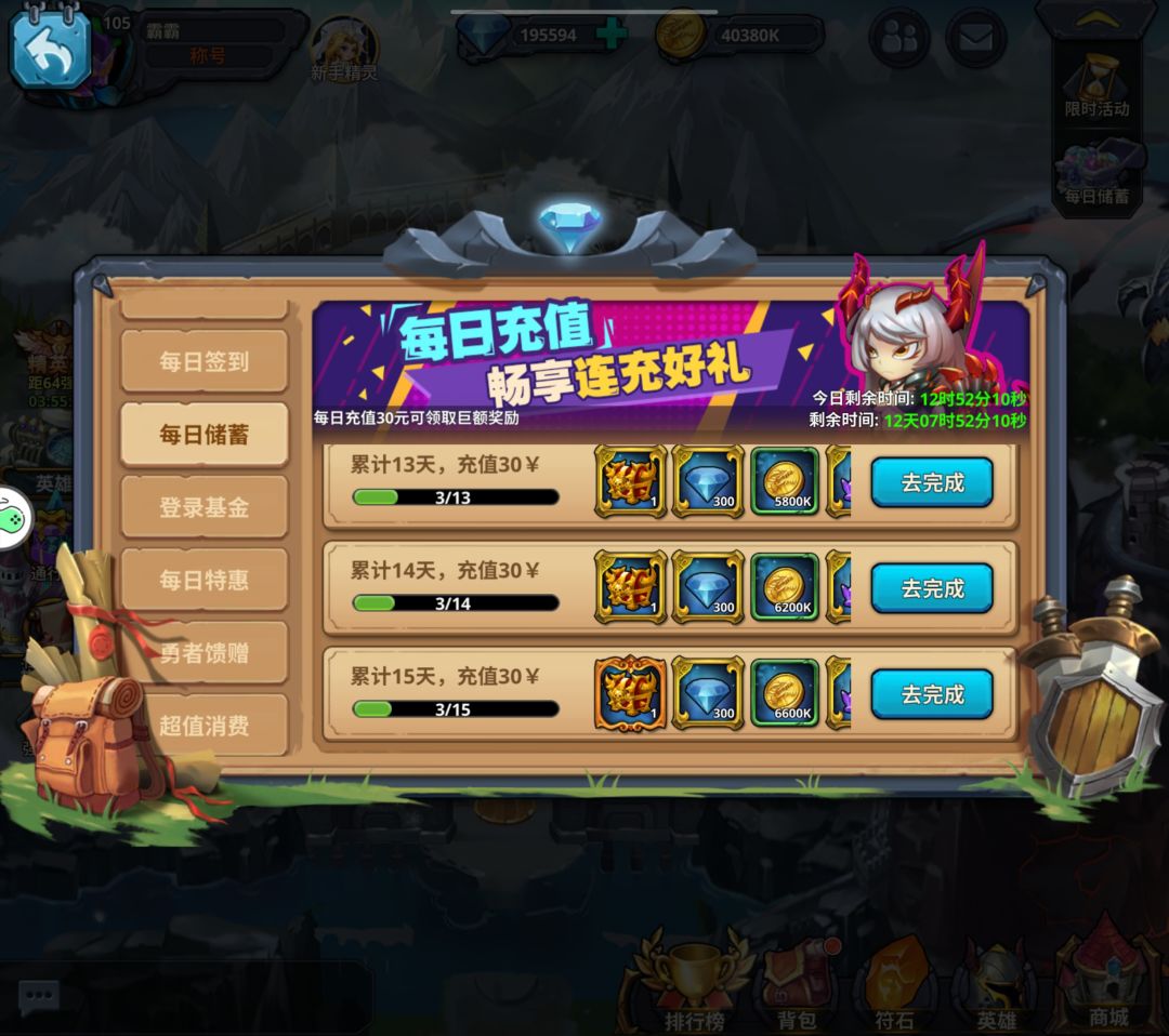 每日储蓄中的幸运宝箱有几率开出25碎片的神魔范迪斯。