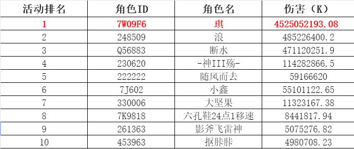 伤害竞赛活动已圆满结束,感谢各位骑士大人的踊跃参与,以下为活动获奖名单