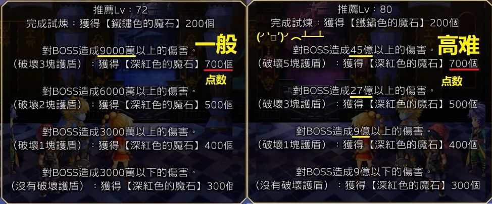 ④第4张地图:带着获得的buff打BOSS,一般难度限制1回合,高难限制3回合,伤害越高获得点数越多,最高奖励需要高难打45亿(1个属性即可)。