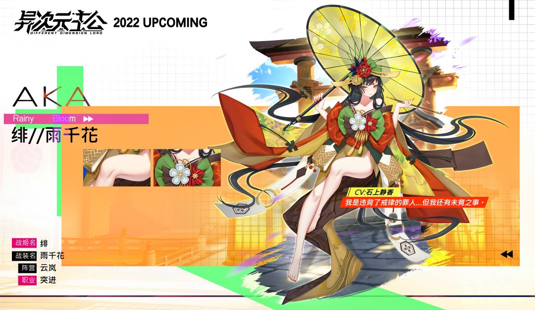 代号:绯,本名不详。云岚内部秘密部队“EMA”的负责人,直接听命于雪伦,专门负责内部肃清和情报刺探等工作。