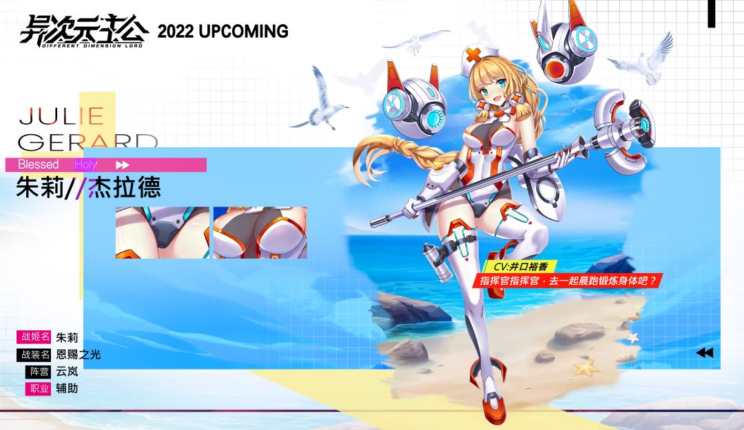 为了报答克莉丝的救命之恩,加入她的麾下成为了一名军医,凭借着高明的医术,被士兵们当做了守护女神。不知何时起,克莉丝麾下的部队在开战前的祈祷的对象,已经从虚无缥缈的神换成了一直忙碌在军营当中的娇小少女。