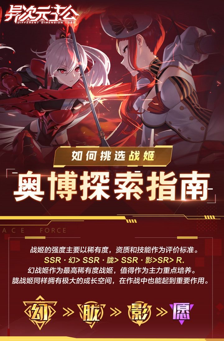 战姬的强度主要以稀有度,资质和技能作为评价标准。详情请看下图