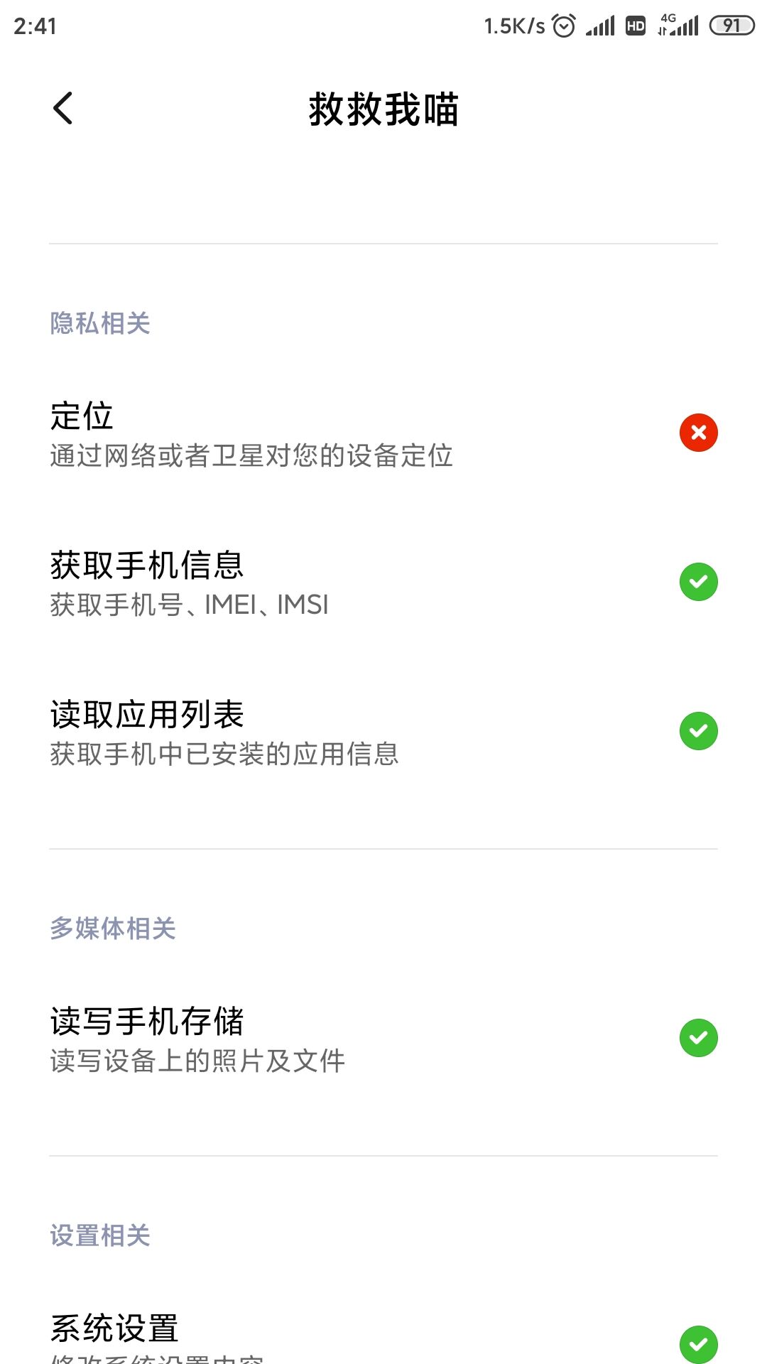 一开始索要的是定位权限我就禁止了,但是之后却说没有存储权限。这十分奇怪