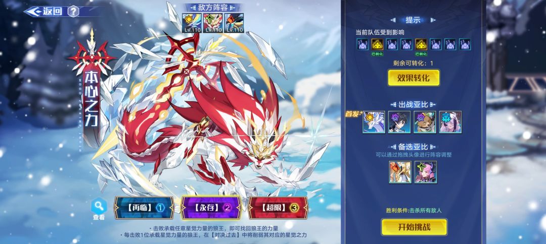 ⑵通关条件:存活15回合(如果十回合击杀一个亚比就可以胜利并跳过第二关)