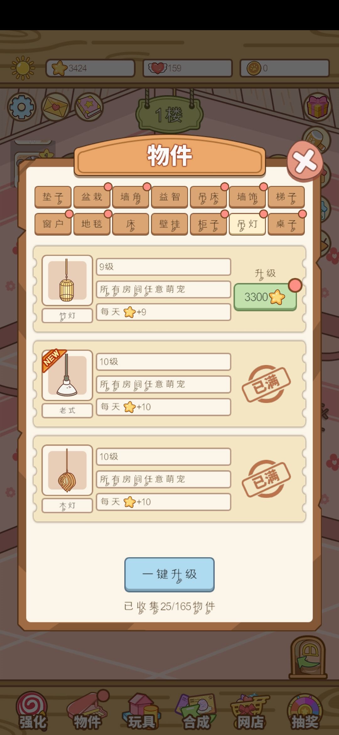 家具直接一键升级,别省着,看清楚家具是花星星的,星星赚的快大家别着急