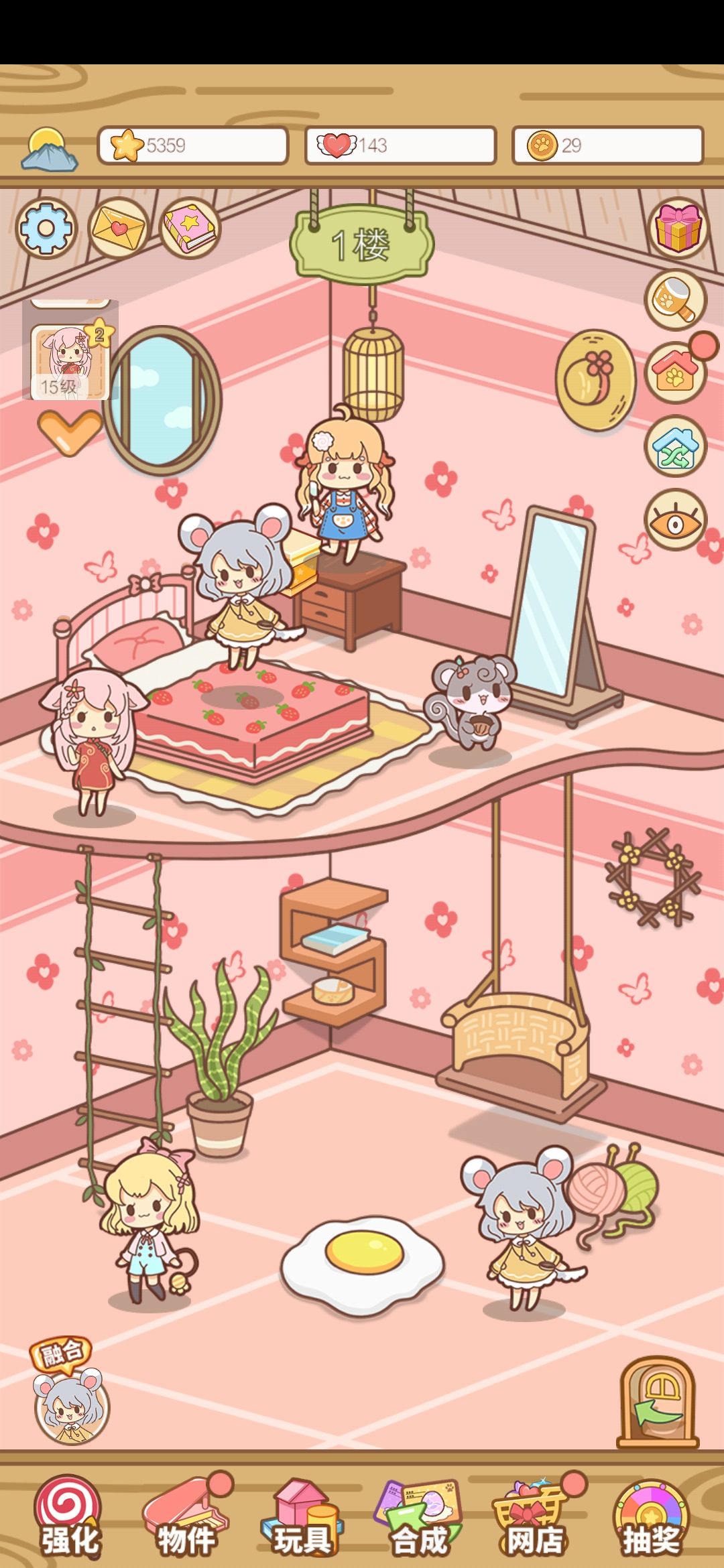 上图右下角的“网店”是每5分钟刷新一次商品,所以刷新了就马上买光,一般来说稍微玩一会儿金币对于网店就不会不够用,大家可以把网店理解为定时刷新的随机商店,而玩具则是给商品升级的地方